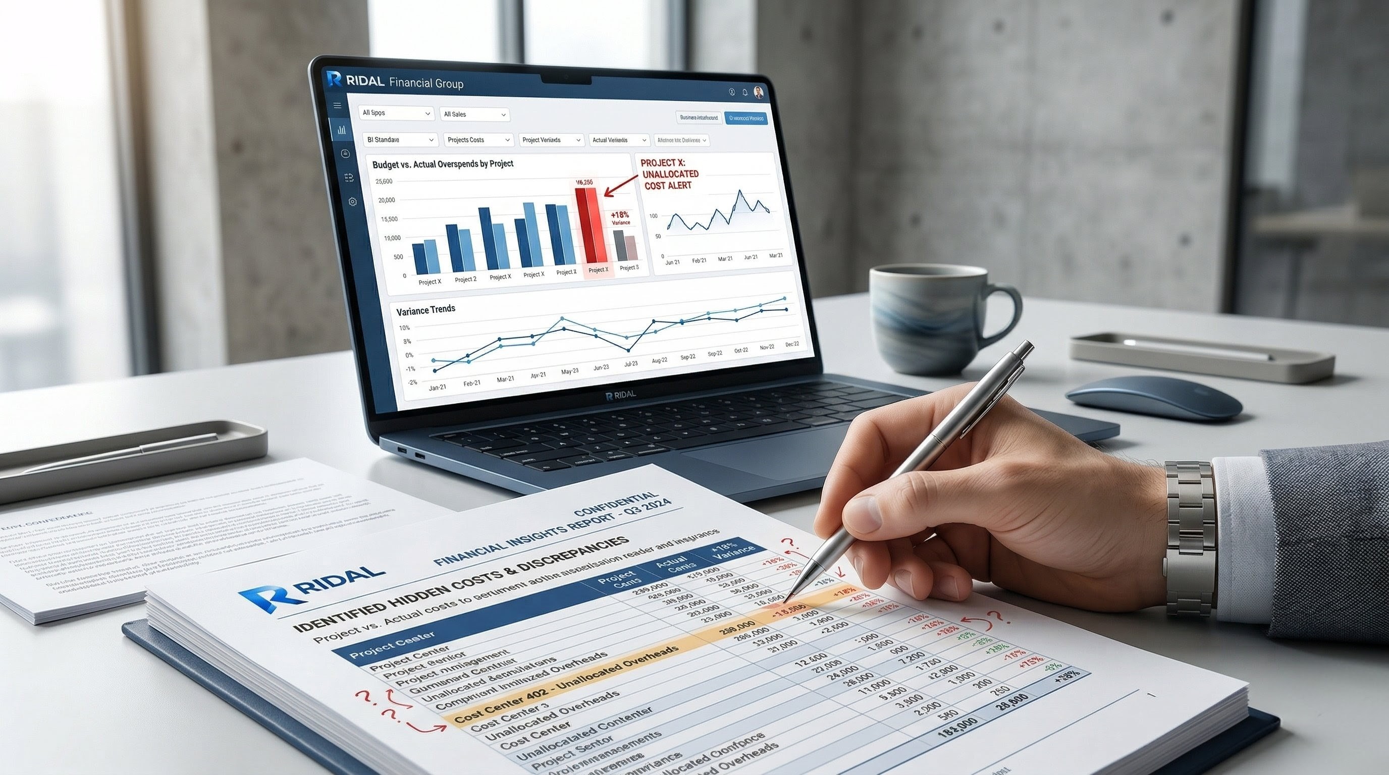 Mientras el contador registra el pasado, RIDAL controla el presente y ordena el futuro: supervisión financiera y operativa, protección de rentabilidad y control continuo.